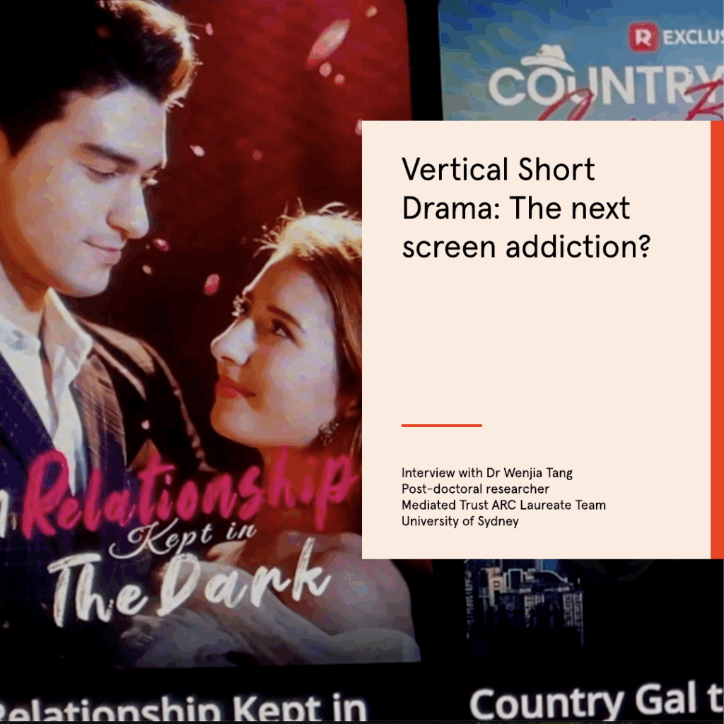 Dr Wenjia Tang, post-doctoral researcher with the Mediated Trust ARC Laureate team, explores the rise of vertical short drama — a fast-growing format reshaping screen culture. In this talk, Dr Tang examines how mobile-first storytelling platforms are transforming audience habits, merging social media aesthetics with narrative content, and raising new questions about attention, monetisation, and media addiction in the digital age.
